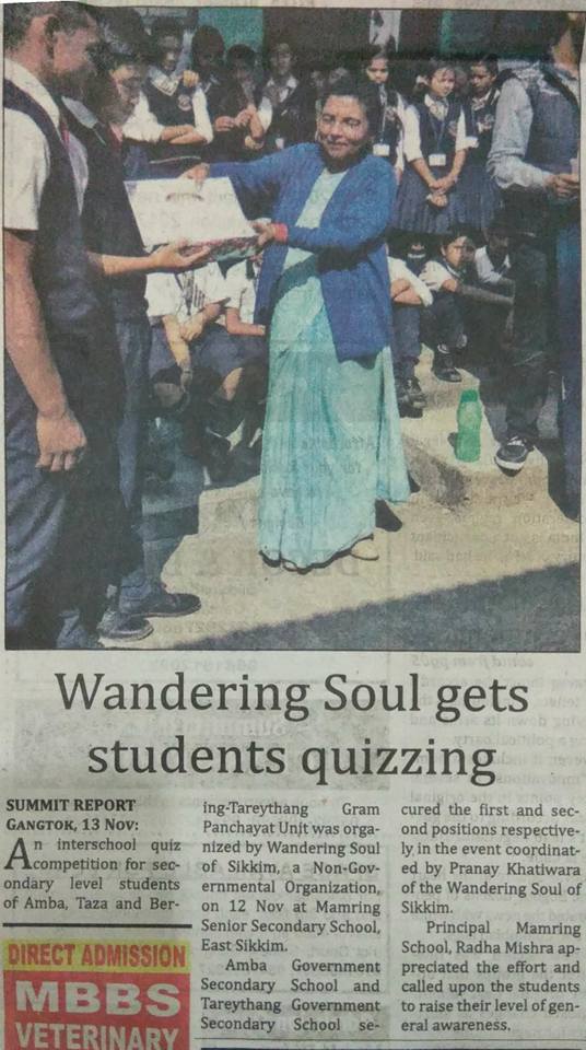 INTER SCHOOL QUIZ AT MAMRING, EAST SIKKIM