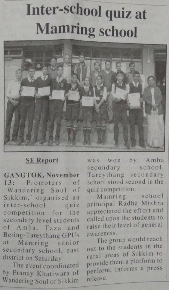 INTER SCHOOL QUIZ AT MAMRING, EAST SIKKIM