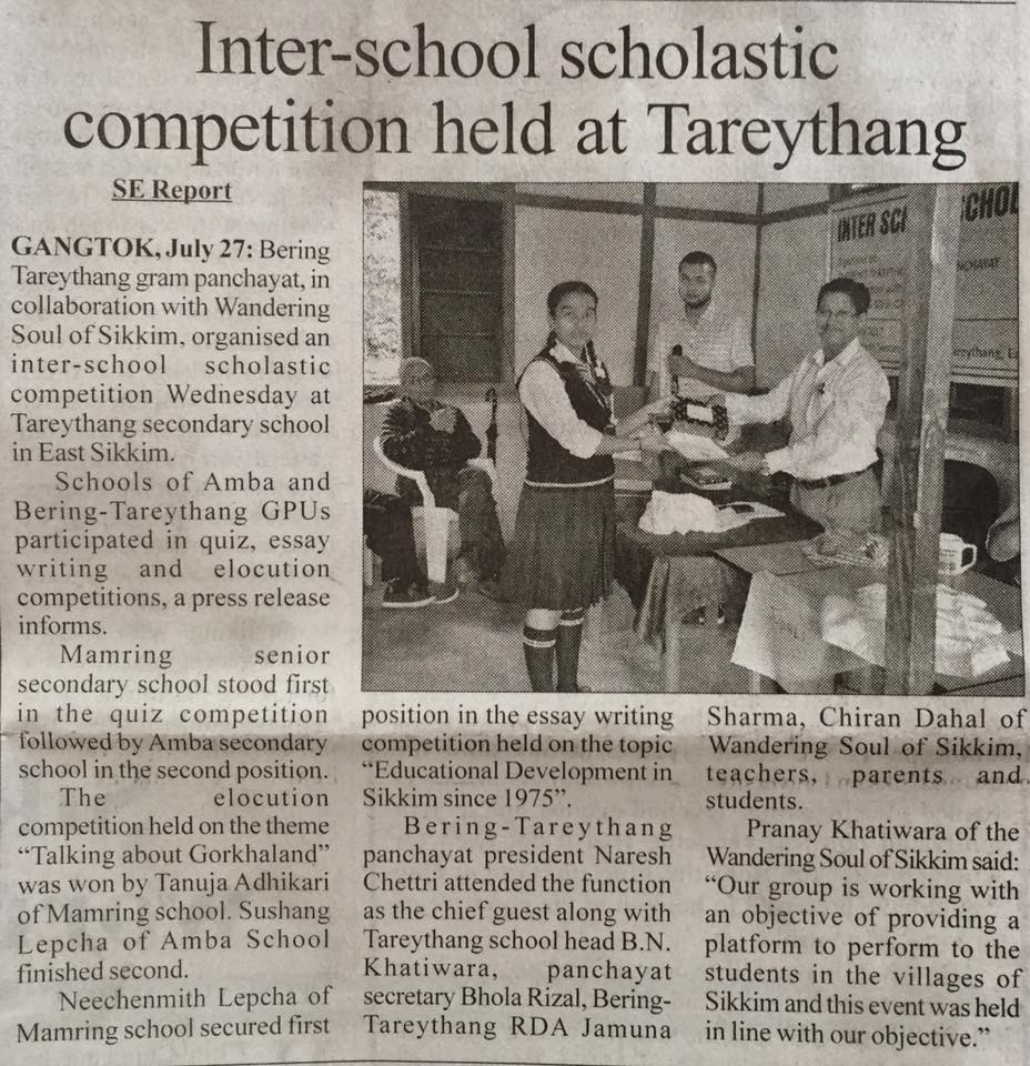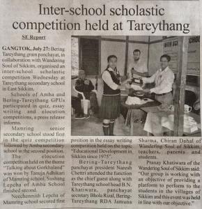INTER SCHOOL SCHOLASTIC COMPETITION AT TAREYTHANG, EAST SIKKIM