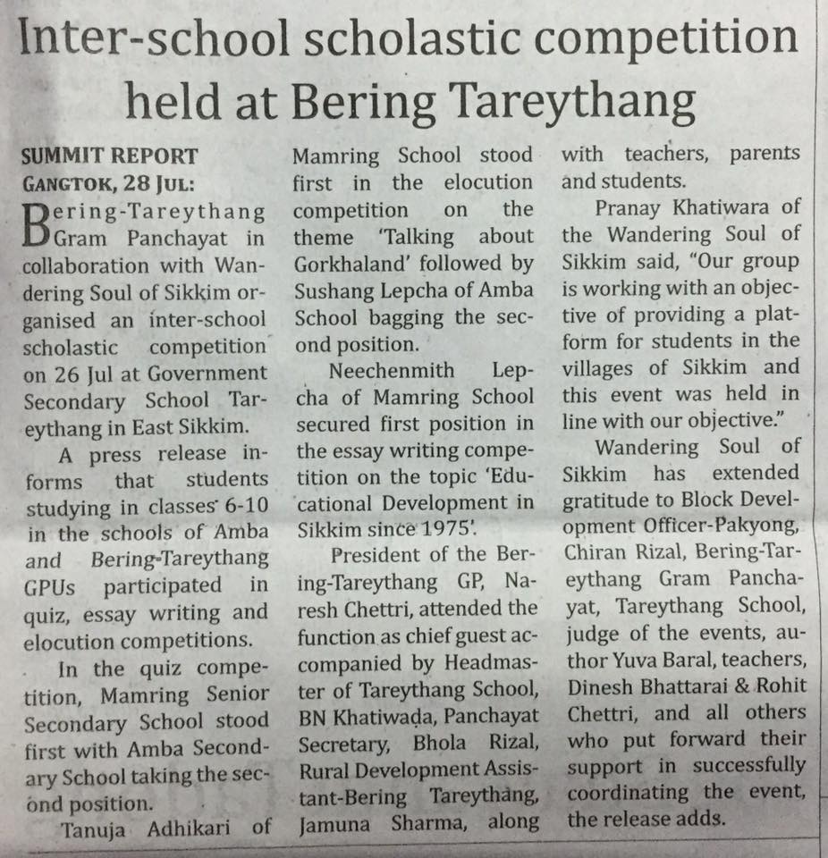 INTER SCHOOL SCHOLASTIC COMPETITION AT TAREYTHANG, EAST SIKKIM