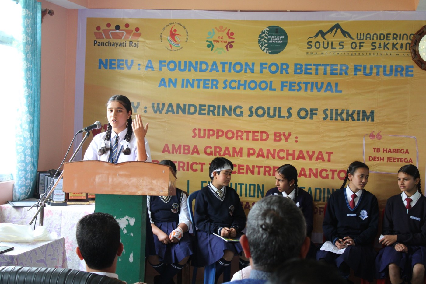 Wandering Souls of Sikkim organised its inter-school festival titled NEEV: A foundation for better future at Amba Gram Prashasan Kendra on 23rd March 2023. The festival was supported by Amba Gram Panchayat & District TB Centre, Gangtok and saw the participation of about 80 students from 9 schools around Amba, Bering Tareythang and Taza GPUs in various competitive events like quiz, elocution, community reading etc.